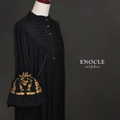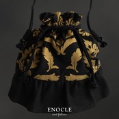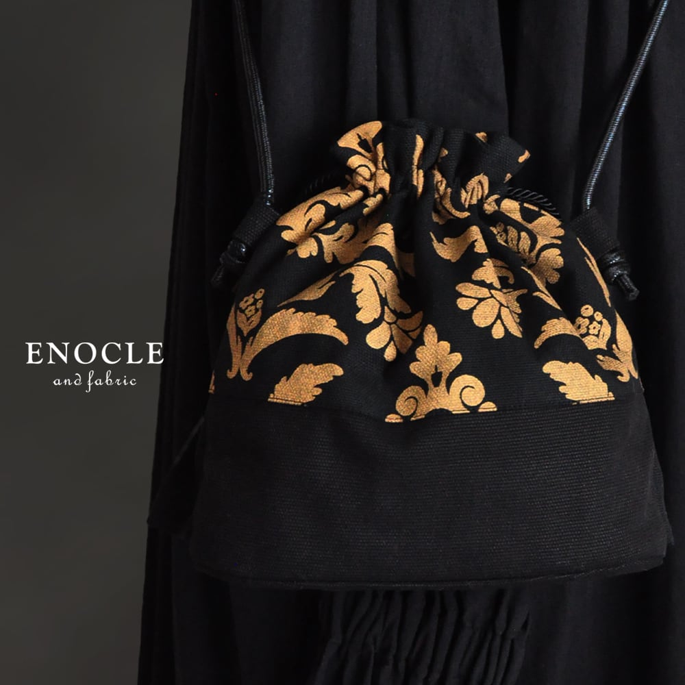 【即納】2422/ Hand Printed アカンサスの巾着BAG(黒)