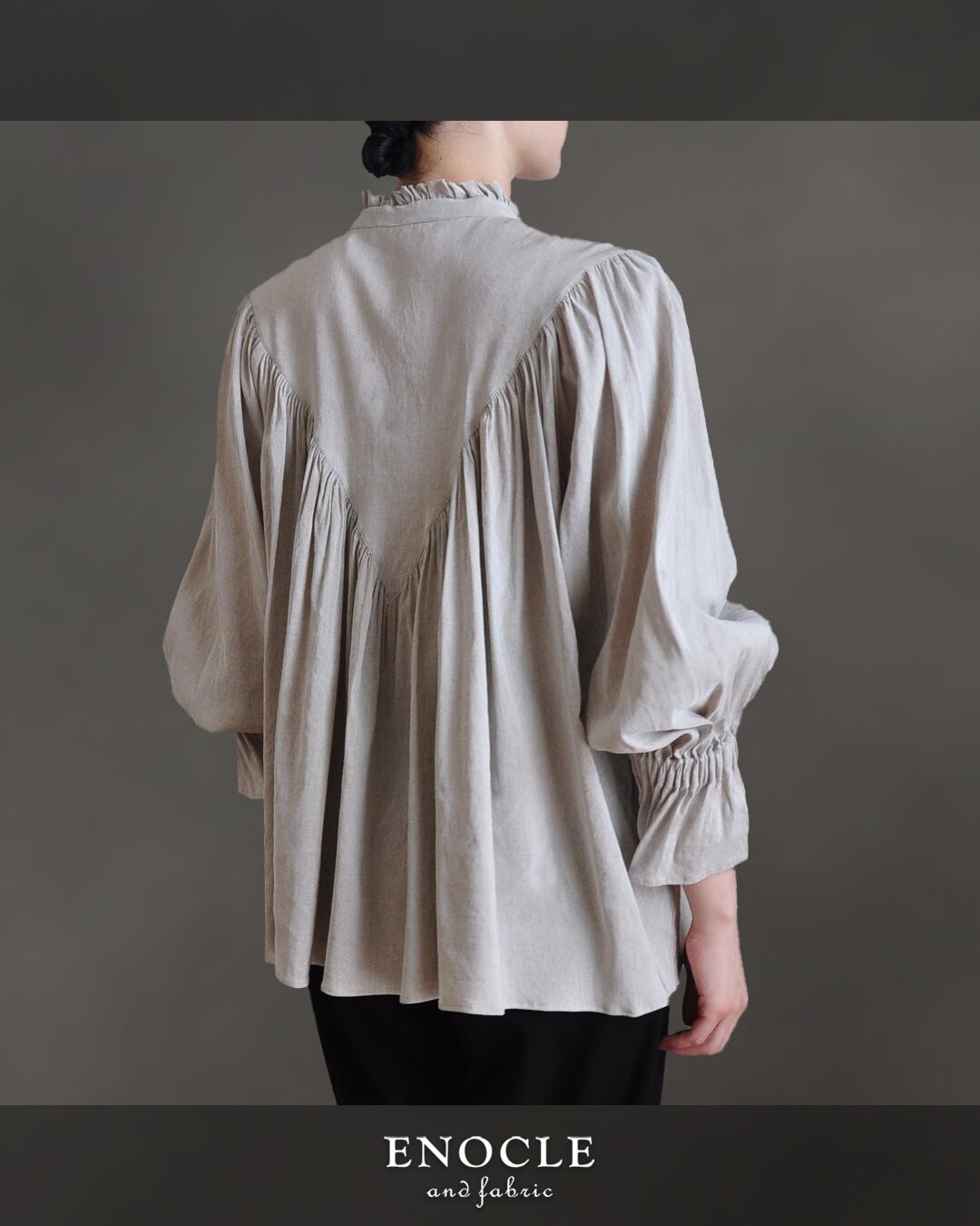 ■■2515/Vラインの切り替えギャザーブラウス■■