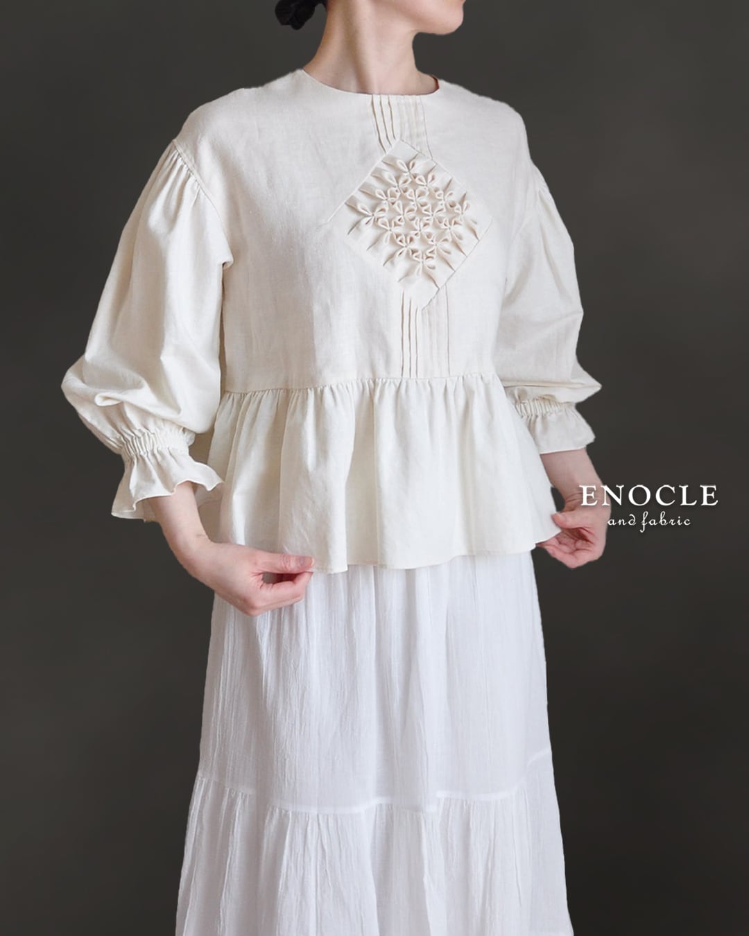 【即納】2561/花たっぷりのリネンブラウス(白)